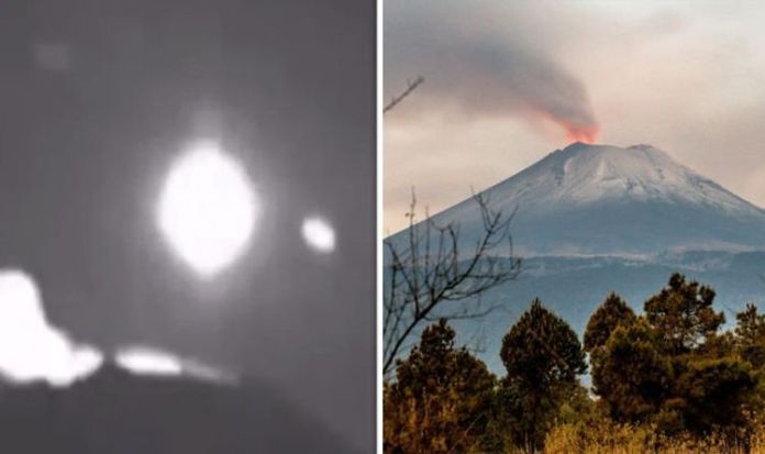Hình ảnh được cho là 2 UFO (trái) xuất hiện phía trên ngọn núi lửa khổng lồ Popocatepetl, gần Mexico City
