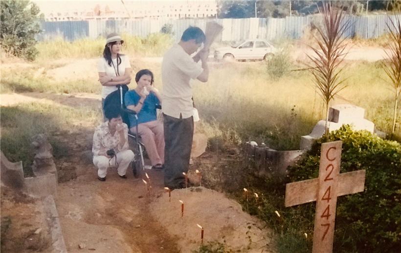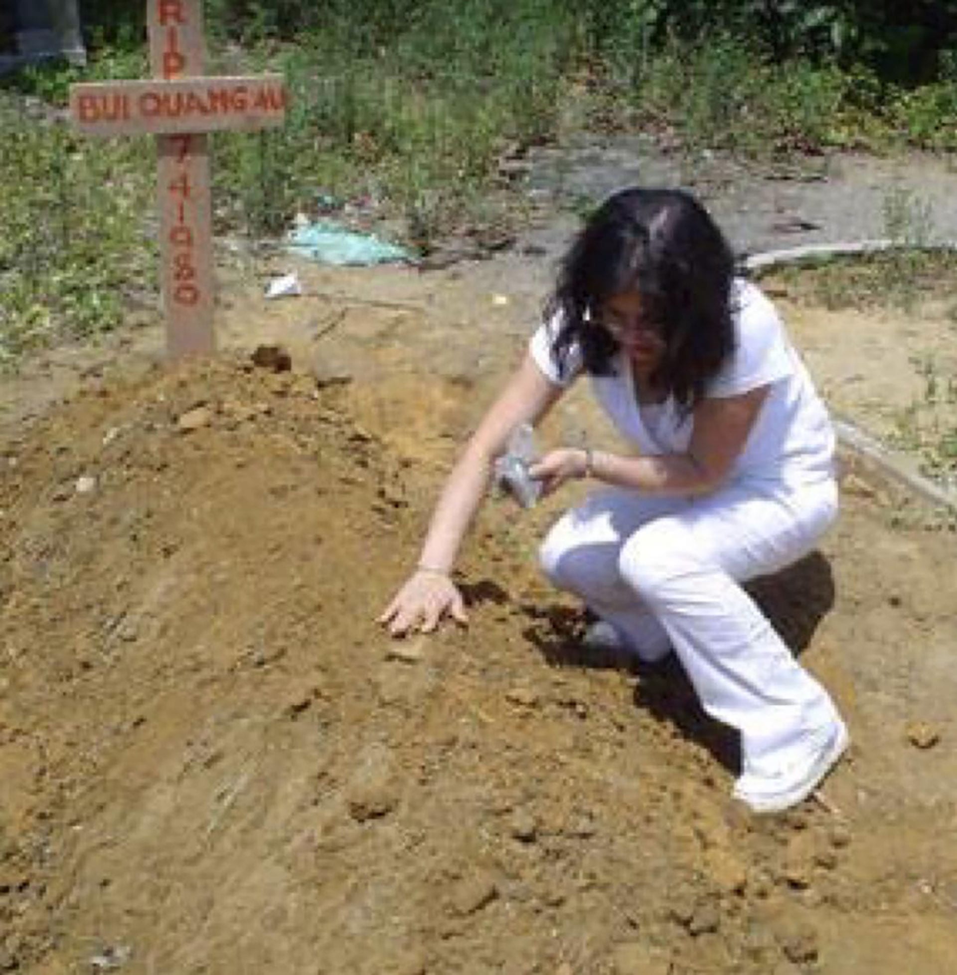 Chị Bùi Kiều Ngân tìm được mộ bố ở Malaysia vào năm 2005. (Hình: Bùi Kiều Ngân cung cấp)