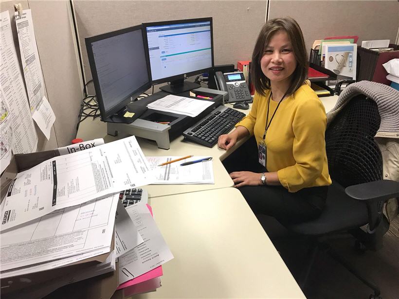 Chị Bùi Kiều Ngân tại nơi làm việc của mình. (Hình: Bùi Kiều Ngân cung cấp)