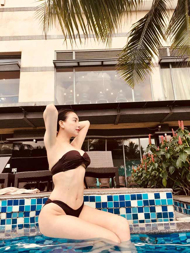 "Trước kia tôi tập yoga, đến phòng gym đều đặn lắm, giờ thì chỉ tranh thủ trước khi đi ngủ tôi tập các bài bụng thôi. Nói thật nhiều khi thời gian ngủ còn chẳng có", người đẹp họ Trà cho biết.