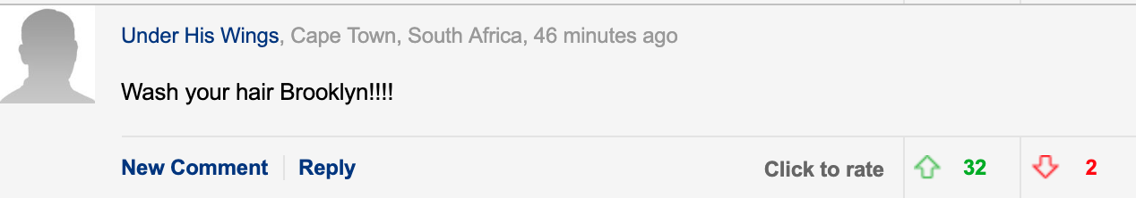 Độc giả tờ Dailymail đã để lại không ít bình luận tiêu cực phía bên dưới. Hầu hết mọi người đều tỏ ra thất vọng với ngoại hình xuống dốc và gu thẩm mỹ tồi tệ của cậu cả nhà Beckham. So với cô bạn gái hơn tuổi, Brooklyn thậm chí trông còn già hơn rõ rệt. Không ít người sẽ nghĩ họ là... bố con thay vì là người yêu của nhau.
