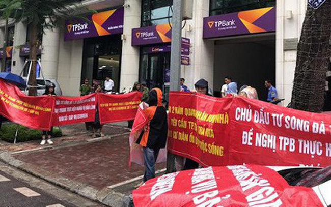 Chính sự im lặng của TPBank nên khách hàng đã nhiều lần lên hội sở của ngân hàng đòi quyền lợi. Đầu tháng 7 vừa qua, cư dân tiếp tục lên hội sở chính ngân hàng TPBank căng băng rôn yêu cầu ngân hàng thực hiện nghĩa vụ bảo lãnh dự án. Nhưng đáp lại vẫn là sự im lặng không có một thông báo chính thức nào của TPBank cho tất cả người mua nhà.
