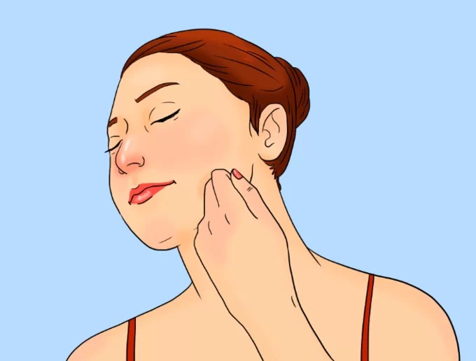 Tay vẫn nắm, dùng phần ngón trỏ và ngón giữ ấn, kéo da từ cằm về phía sau. Thực hiện động tác này khoảng 7,8 lần cho mỗi bên mặt.