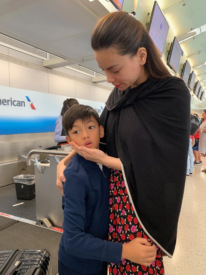 Tối 22/7, trên trang Facebook cá nhân, Hồ Ngọc Hà chia sẻ ảnh tiễn con trai Subeo ở sân bay nước Mỹ. Cô viết: "Bịn rịn chia tay nhau để cho em về dự đám cưới của ba sau kỳ nghỉ nhiều kỷ niệm đẹp và quấn quýt với nhau từng giây phút".