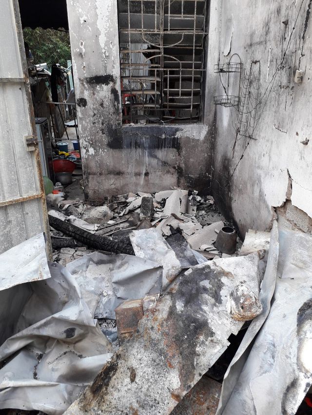 Kể lại sự việc vừa qua, chị H. cho biết, khoảng 19h ngày 19/7, chị đang cho con ăn cơm trong ki-ốt bán quần áo (đây vừa là cửa hàng bán đồ vừa là nơi sinh sống của mẹ con) thì thấy mùi xăng nồng nặc.