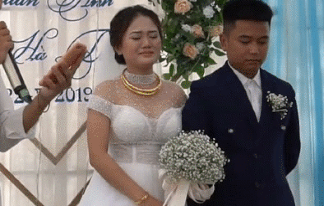 Cô dâu khóc nức nở trong ngày cưới khi nghe lá thư của bố gửi từ xa về. Cảnh này khiến ai nấy đều cay mắt. Chuyện là không kịp về dự đám cưới của cô con gái, một ông bố đã viết thư cùng những lời dặn dò rồi nhờ con trai đọc trước hôn trường.