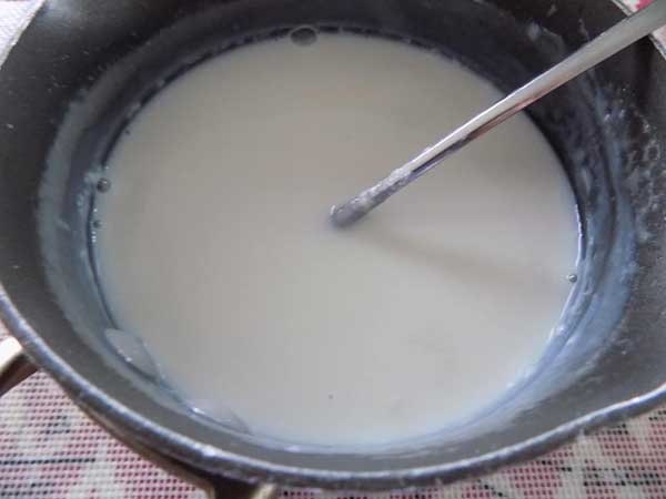 Tất cả các pha lẫn đến khi tan hết đường và sữa đặc là ta được nồi nước cốt dừa mix cho chè dừa dầm.