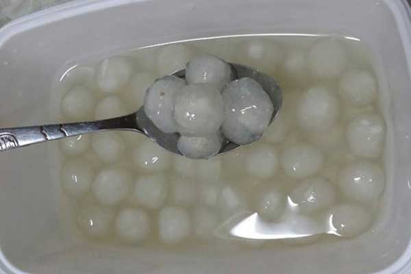 -Luộc trân châu: Đun nước sôi rồi thả các viên trân châu vào, khi nào trân châu nổi thì các b bật nhỏ lửa đun 10-15p cho trân châu đủ mềm dẻo thì vớt ra tô rồi trộn 1 thìa đường vào cho trân châu khỏi dính vào nhau.