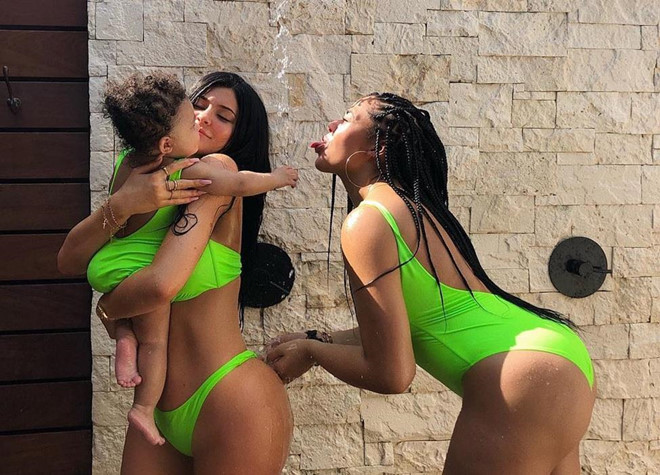 Jordyn Woods (phải) đi nghỉ cùng mẹ con Kylie Jenner nhân dịp sinh nhật một tuổi của bé Stormi. Ảnh: Instagram.