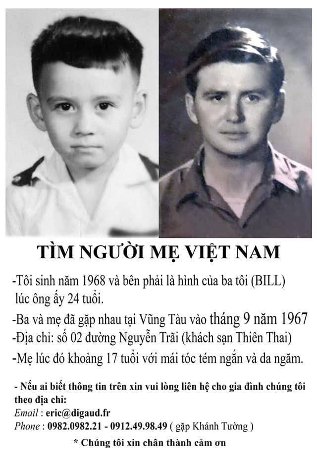 Thông tin tìm mẹ ruột , đạo diễn Eric Digaud viết bằng tiếng Việt và chia sẻ khắp nơi trên mạng xã hội