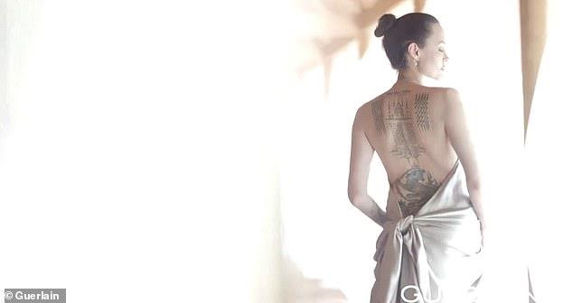Angelina Jolie lộ lưng kín hình xăm trong video quảng cáo mới.