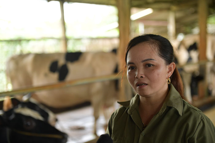 Trang trại bò này là của chị Lương Thị Đoan ở Vĩnh Phúc. Trang trại của chị hiện đang có 30 con bò sữa. Nhờ đàn bò, thu nhập mỗi tháng của chị lên tới cả trăm triệu đồng.