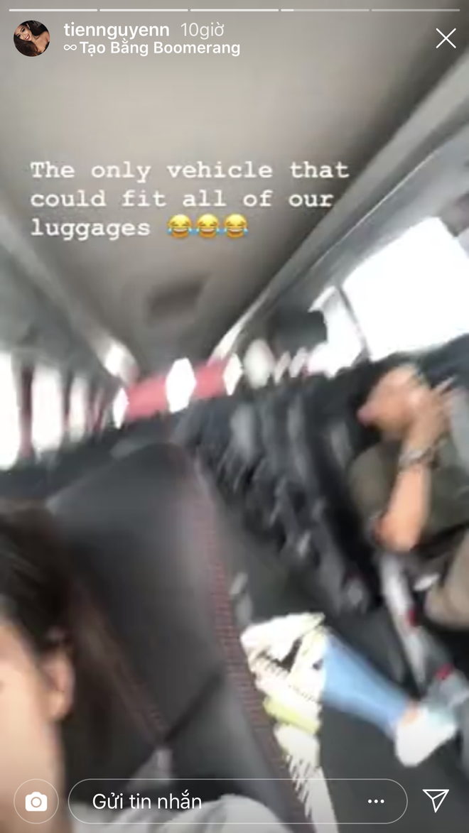 16 chiếc vali khiến Tiên Nguyễn phải di chuyển bằng xe lớn vì đây là phương tiện duy nhất có thể chở hết đống đồ này.