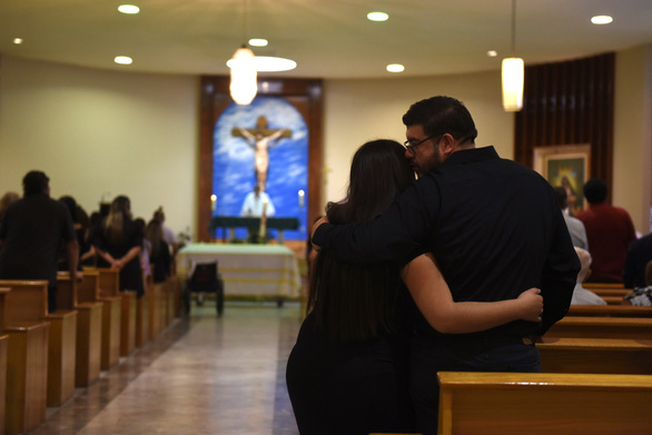 Bạn bè và gia đình của những nạn nhân trong vụ xả súng tại El Paso cầu nguyện ở nhà thờ tại thành phố này ngày 9-8 - Ảnh: REUTERS