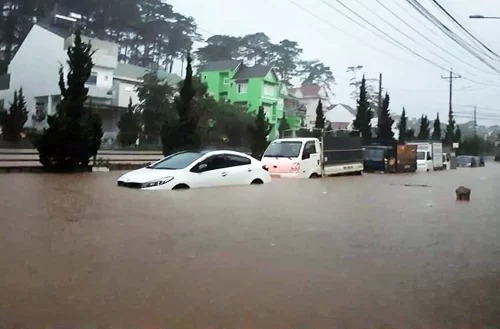 Nội ô Đà Lạt ngập nặng sáng 8/8. Ảnh: Hoàng Trường.