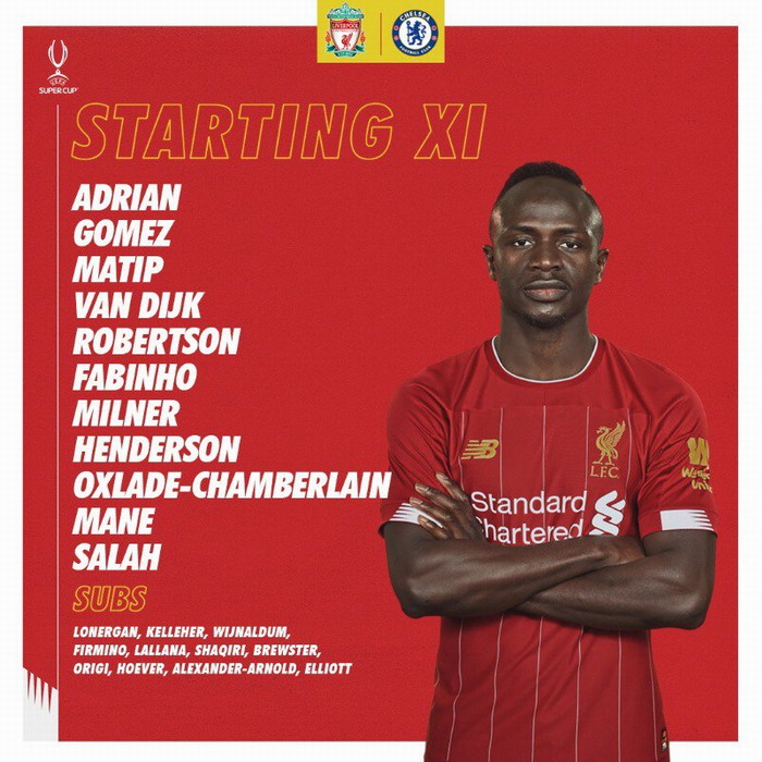 Liverpool: Adrian - J. Gomez, Matip, Van Dijk, Robertson - Fabinho, Henderson, Milner - Oxlade-Chamberlain, Salah, Mané.
