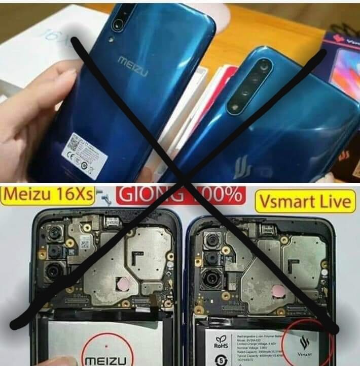 Người dùng này sau đó đã tiến hành "mổ bụng" Vsmart Live và Meizu 16Xs và phát hiện ra hai mẫu máy này chia sẻ chung thiết kế phần cứng bên trong, từ bảng mạch, các connector cho đến cả con ốc vít. Thứ khác biệt duy nhất là viên pin, khi pin của Meizu 16Xs gồm toàn các ký tự Trung Quốc, còn của Vsmart là tiếng Anh.