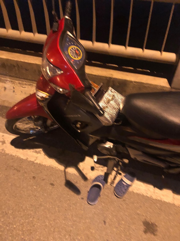 Cô gái trẻ bỏ lại chiếc xe máy trên cầu Vĩnh Tuy nhảy xuống sông Hồng tự tử. Ảnh: Đ.N