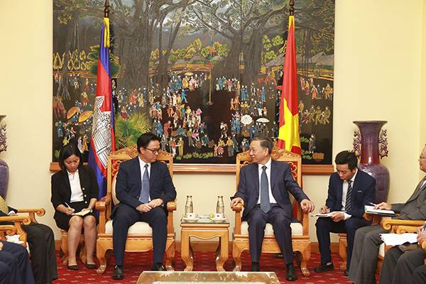 Về quan hệ hợp tác giữa Bộ Công an Việt Nam và Bộ Nội vụ Campuchia, Bộ trưởng Tô Lâm nêu rõ, hai Bộ luôn thực hiện tốt chủ trương của lãnh đạo hai nước trong hợp tác phòng, chống tội phạm; lực lượng thực thi pháp luật hai nước không ngừng phát huy tuyền thống hợp tác, giúp đỡ nhau hoàn thành xuất sắc nhiệm vụ, góp phần xây dựng, giữ gìn đường biên giới hòa bình, hữu nghị hợp tác và phát triển, phục vụ đắc lực nhiệm vụ phát triển kinh tế - xã hội ở mỗi nước, vì cuộc sống bình yên và hạnh phúc của nhân dân hai nước Việt Nam – Campuchia.