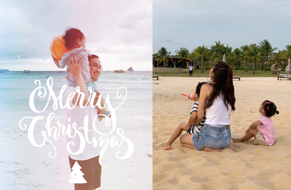 Hà Tăng và chồng chia sẻ khoảnh khắc vui đùa cùng con.
