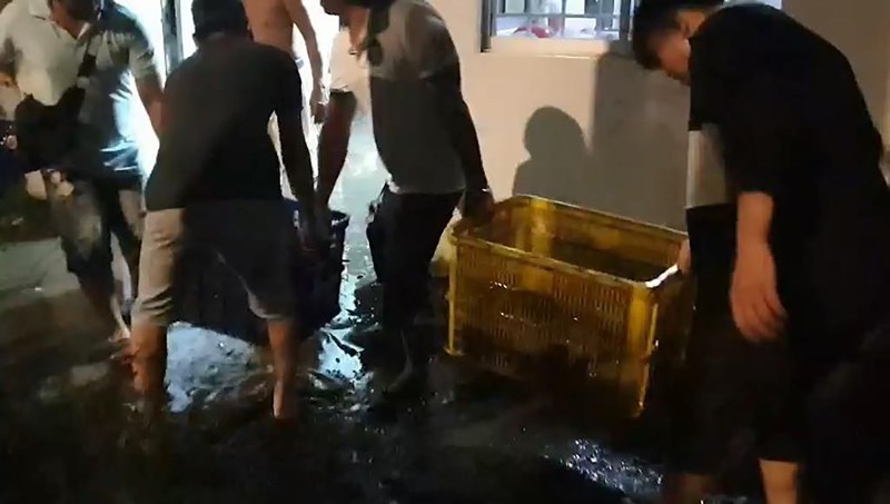 Ngay khi nhận tin báo, một nhóm hơn trăm người là những tài xế nằm trong các nhóm hội chuyên giúp đỡ các tài xế xe gặp nạn đã có mặt hỗ trợ điều tiết, gom số cá vào sát lề.