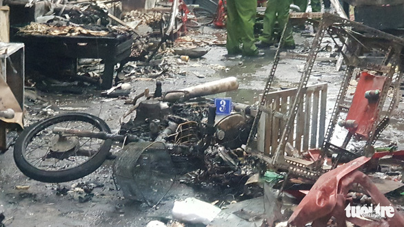 Sau nhiều tiếng nổ, lửa bùng lên trước kiôt, vợ chồng tôi không dám thoát ra ngoài, chỉ kịp vặn van bình gas trong nhà rồi chạy vào nhà tắm. Lát sau thoát ra khỏi nhà, vợ chồng tôi mới tá hỏa đi tìm người thân. May mắn mọi người đều an toàn" - ông Nguyễn Xuân Tiến kể.