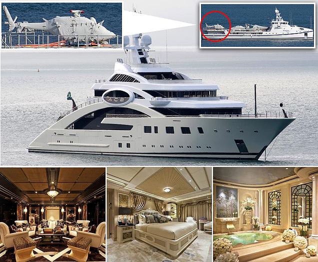 Hình ảnh dưới dy96 về siêu du thuyền hạng sang của tỷ phú người Ukraine trị giá 150 triệu bảng và thuyền trợ giúp có tên Garcon và một máy bay trực thăng thuộc sở hữu của tỷ phú Yuriy Kosiuk đã đưa siêu du thuyền này đến ngoài khơi bờ biển Devon - theo sau là một chiếc tàu hộ tống để mang theo máy bay trực thăng và siêu xe, làm dân chơi lác mắt.