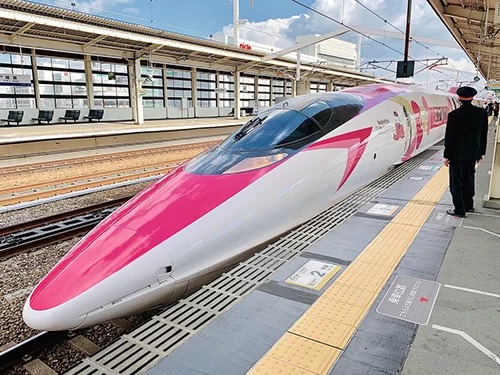 Đoàn tàu cao tốc với chủ đề Hello Kitty. Ảnh: Flickr.