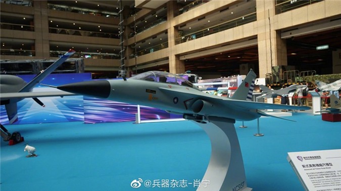 Mô hình một dòng máy bay huấn luyện thế hệ mới mà Đài Loan đang phát triển, trông thiết kế của nó có một phần giống với tiêm kích F-CK-1 Kinh Quốc mà nước này tự thiết kế và trang bị cho không quân.