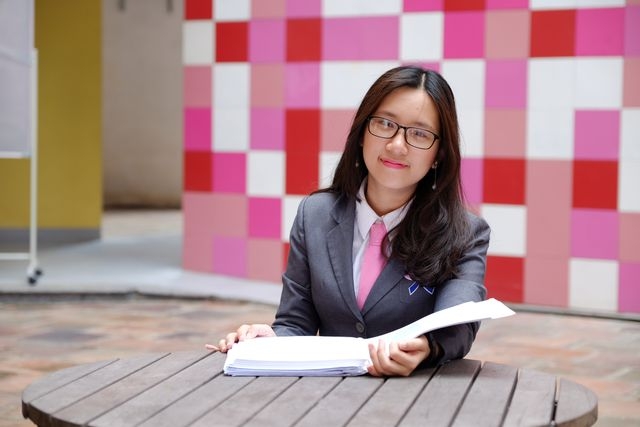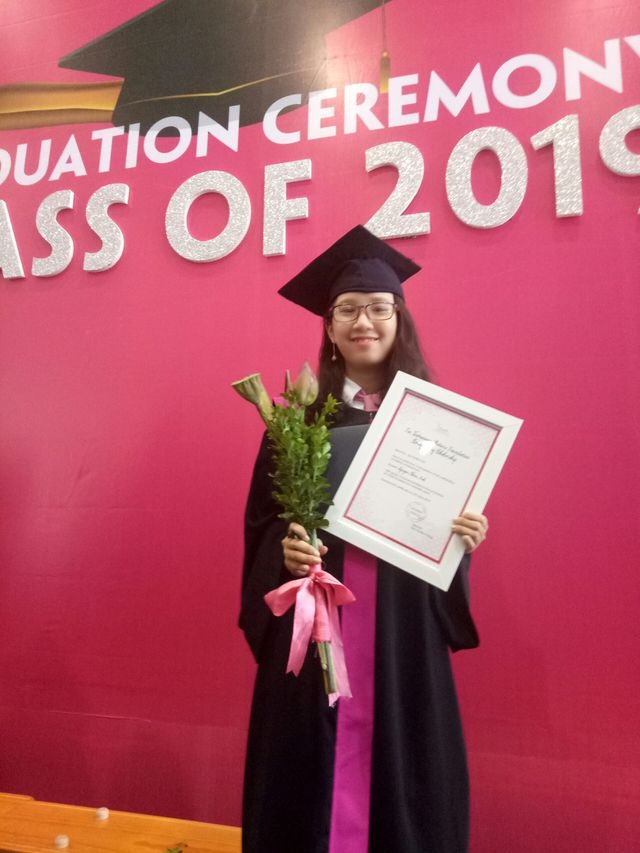 Điều này đã thôi thúc em phải học mọi lúc để bắt kịp chương trình. Nhờ vậy, hết 3 tháng của kỳ một lớp 10, tiếng Anh của em đã cải thiện và có thể nghe hiểu hoàn toàn", Châu Anh chia sẻ thêm.