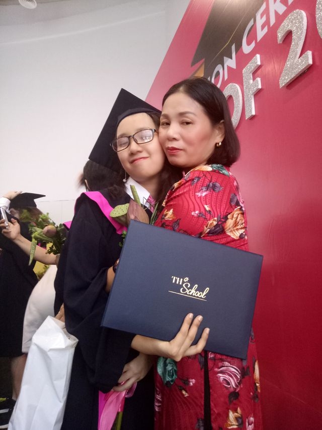 Châu Anh chia sẻ niềm vui với mẹ khi được nhận học bổng du học bốn năm với trị giá hơn 5 tỷ đồng của trường đại học SP Jain School of Global Management. (Ảnh: NVCC)
