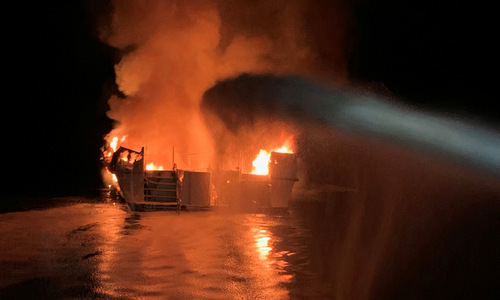 Tàu Conception ở ngoài khơi bang California, Mỹ bùng cháy vào sáng sớm ngày 2/9, hơn 30 người mắc kẹt trên tàu và có thể đã thiệt mạng.