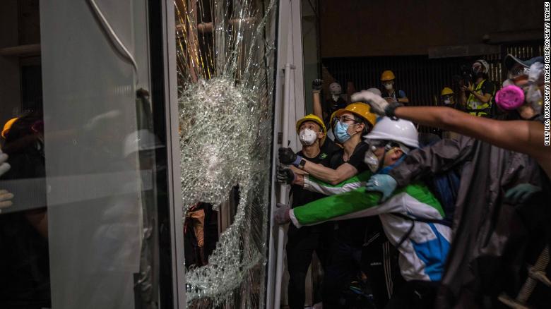 Những người biểu tình xông vào đập phá trụ sở của cơ quan lập pháp tại Hồng Kông (ảnh CNN)