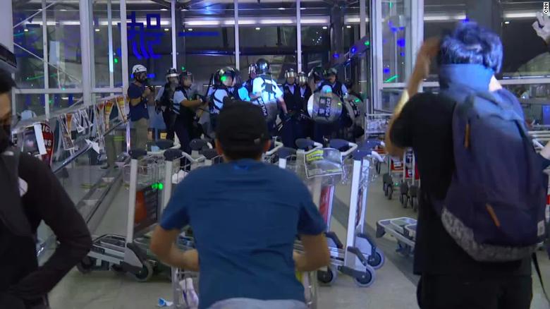 Sân bay trở thành nơi đụng độ của cảnh sát và người biểu tình (ảnh CNN)