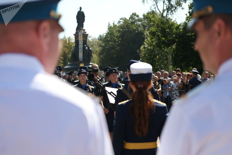 Các học viên của trường đạo tạo phi công quân sự Nga tham gia diễu hành.