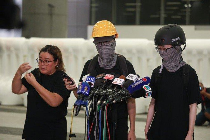 Hai đại diện biểu tình họp báo chiều nay ở Hong Kong sau khi Đặc khu trưởng Lâm Trịnh Nguyệt Nga tuyên bố chính thức rút bỏ dự luật dẫn độ. Ảnh: SCMP