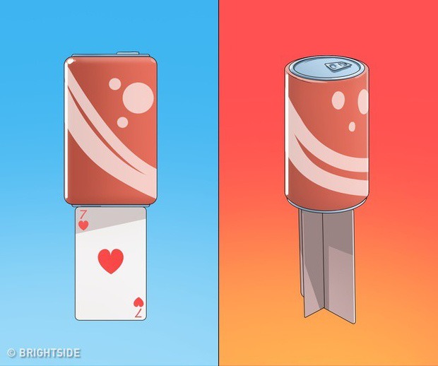 Có lẽ chẳng ai nghĩ sẽ đặt được một lá bài dựng đứng thẳng trên bàn. Vậy mà hội ảo thuật gia lại làm được, còn cho thêm được một lon nước ngọt lên trên đó nữa cơ.
