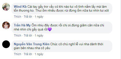 “Cái tay gầy trơ vậy có khi nào tôi vô tình nắm lấy làm tổn thương không? Thôi ốm nhiêu được rồi, đừng ốm nữa tôi nhìn tôi xót", “Ốm nhiêu đây được rồi chị ơi, đừng giảm cân nữa chị nhé, nhìn chị gầy quá rồi", “Cái cẳng tay Phương sao vậy?”…là một số bình luận của cư dân mạng.