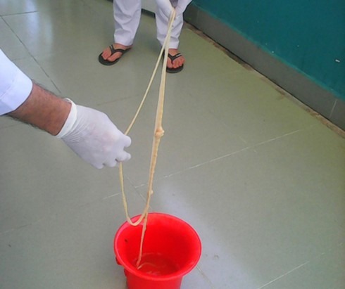 Trước đó, sáng 5/9, ông N. nhập viện trong tình trạng đau bụng, buồn nôn và được các bác sĩ chẩn đoán bị nhiễm sán xơ mít. Sau khi uống thuốc xổ, bệnh nhân đi ngoài ra một con sán xơ mít dài 7m. Được biết, đây là con sán thứ 50 trong vòng 3 năm trở lại đây mà bệnh viện này xổ thành công.