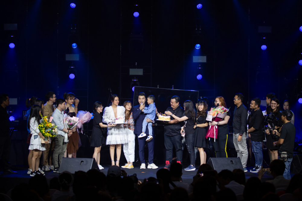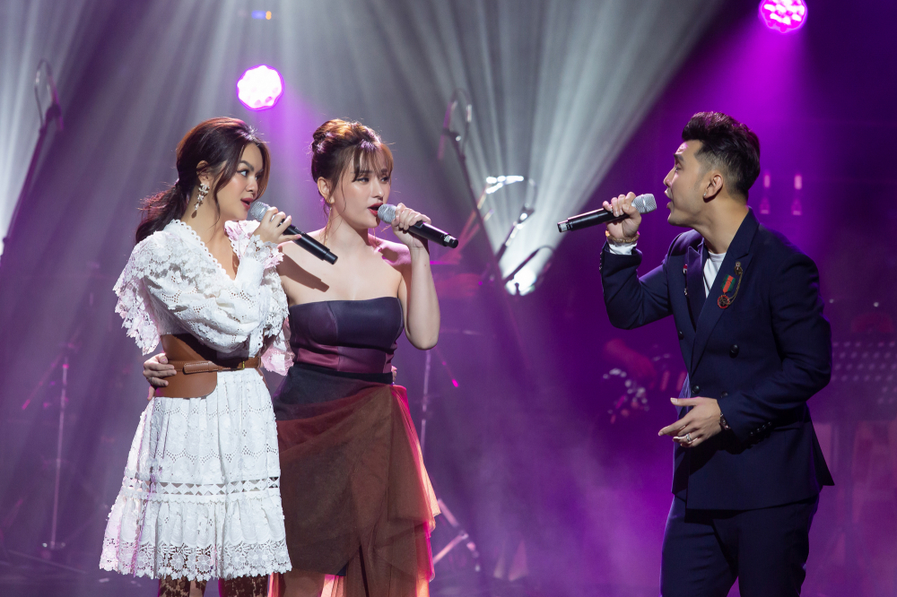 Nữ ca sĩ gửi lời cảm ơn Quang Huy vì hỗ trợ cô khá nhiều trong đêm nhạc lần này.