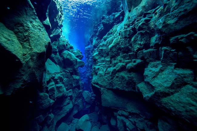 Silfra là một vết nứt hẹp giữa lục địa Bắc Mỹ và Âu-Á. Nó nằm trong Công viên Quốc gia Thingvellir và nước ở đây trong vắt. Bạn thực sự có thể uống nước ở đây vì nó rất sạch.