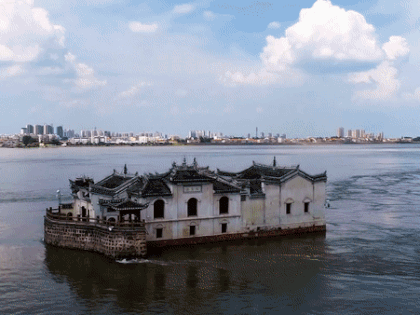 Ngôi đền Quan Âm được dựng trên khối đá ngầm lớn nằm giữa lòng sông Trường Giang thuộc địa phận thành phố E Zhou, tỉnh Hồ Bắc, Trung Quốc. Ngôi đền được xây từ thời nhà Nguyên và vẫn đứng vững suốt hơn 700 năm qua.