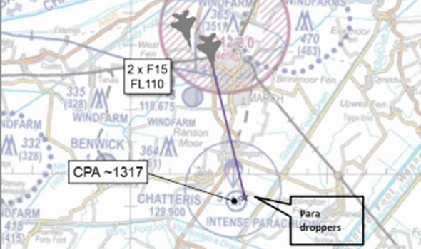 Cơ quan điều phối không lưu Anh, dù chưa thể xác định cụ thể mức độ sít sao của vụ va chạm trên, nhưng cho biết "video từ máy quay Go-Pro gắn trên mũ bảo hiểm của một trong 2 người nhảy dù" cho thấy họ "có thể đã thấy rõ các máy bay F-15 ở dưới chân."