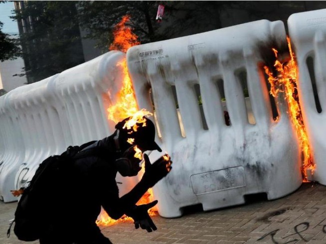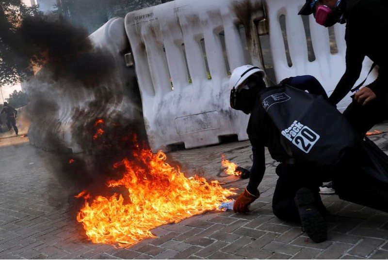 Hình thức biểu tình của người biểu tình Hong Kong cuối tuần qua cũng khá tương tự các cuối tuần gần đây. Nhiều nhóm biểu tình quá khích mặc quần áo đen che mặt nạ phóng hỏa đường phố, đập phá các trạm tàu điện, tấn công cảnh sát bằng gạch đá, bom xăng.