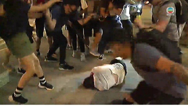 Tại một nơi khác, một người đàn ông mặc áo trắng được cho ủng hộ chính phủ Trung Quốc bị người biểu tình đánh nằm bất tỉnh trên đường với đầu đầy máu, và sau đó đã được xe cứu thương đưa về bệnh viện.