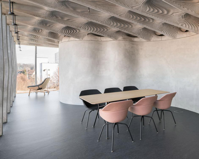 Nhưng việc này sẽ xảy ra như thế nào? Theo Kohler, hợp tác với robot có nghĩa là để cho robot biến các thiết kế thành quy trình và thực hiện chúng. Trần trang trí của DFAB House, được tạo ra bằng máy in cát 3D kích thước lớn, gợi ý về khả năng này.