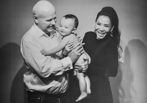 Thu Minh bên chồng và con trai. Ảnh: TM.