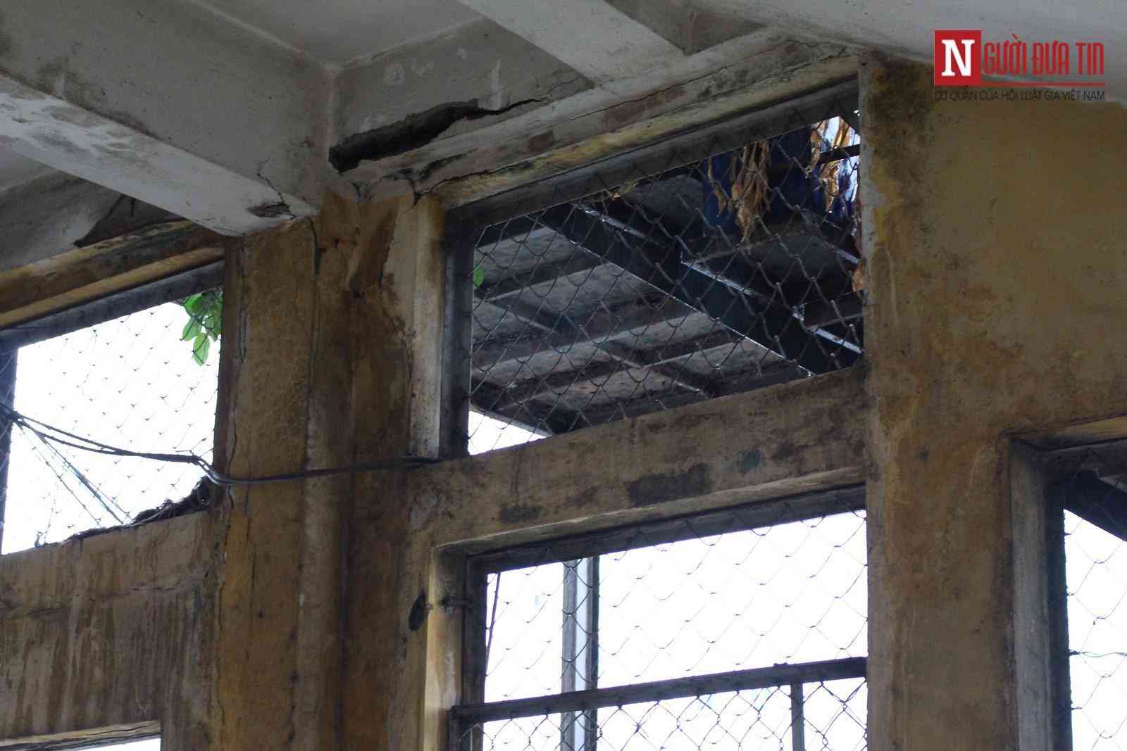 Những mảng xi măng bong tróc rớt xuống nền nhà là chuyện thường ngày.