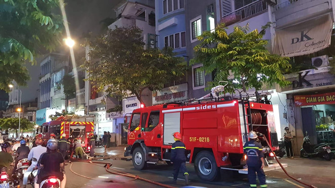 Cảnh sát PCCC quận 3 điều 4 xe cứu hoả cùng hàng chục cán bộ chiến sĩ tiếp cận hiện trường dập lửa. Đến 19h20, đám cháy mới được khống chế.