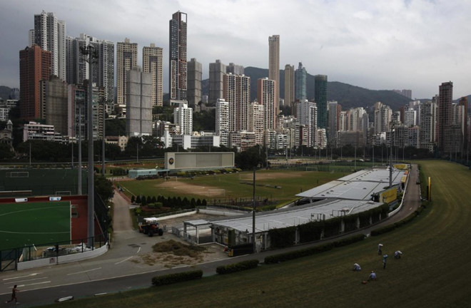 Những ṭa nhà chung cư cao cấp được nh́n thấy đằng sau trường đua ngựa Jockey Club